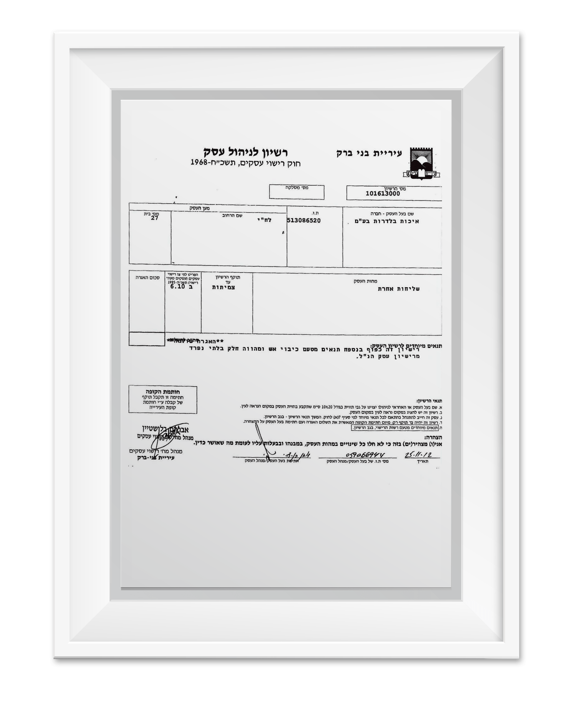 רשיון לניהול עסק