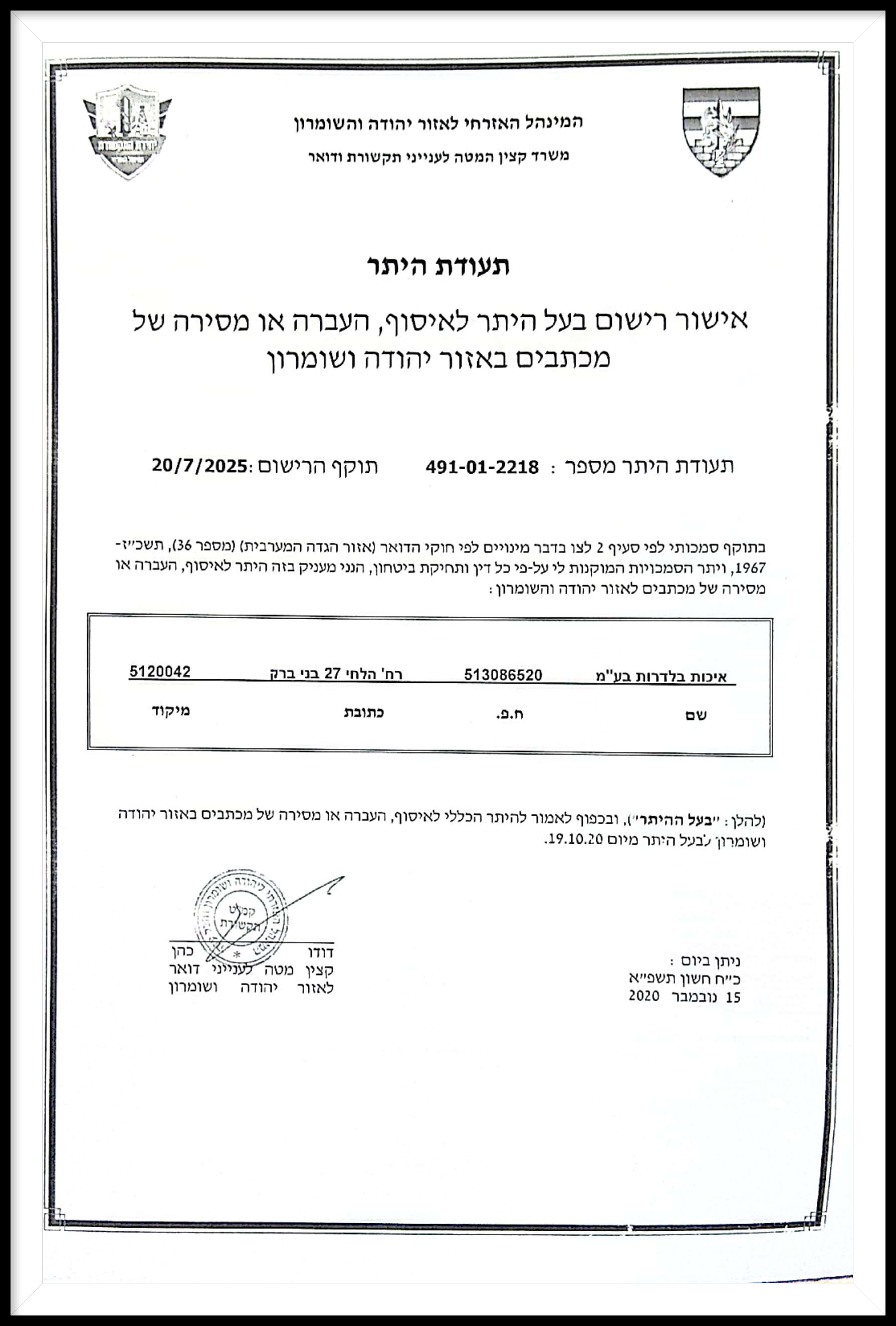 רישיון להעברת דואר